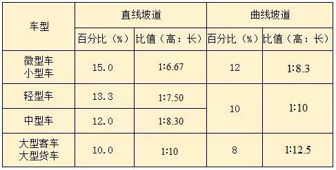 注:坡道转向角度为机动车转弯时的连续转向角度。