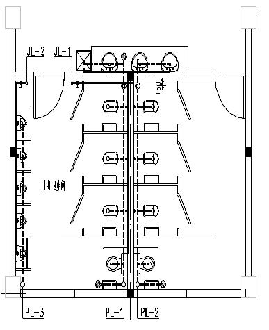 4.11立管系统的数量,种类;本例给水立管两路,JL1、JL2;排水立管三路,PL1、PL2、PL3。