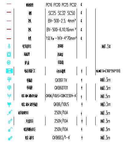 2、图例和设备材料表要结合平面图与系统图进行比照,防止漏项、缺项。特别注意管线的高差电气类是在平面图上进行文字表述。