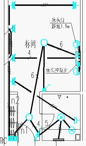 4.4灯具的型号,数量;本案例有220V18W筒灯,2盏;卫生间防水防尘灯,1盏;床头灯2盏;镜前灯1盏。
