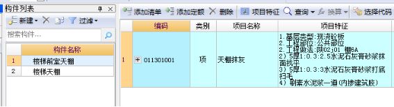 房间新建好之后,接下来就点画上去,如下图,我们会发现楼地面工程量正确,墙面工程量正确、天棚工程量软件把休息平台板底以及楼层平台板底和梯梁部分都算上了,但是梯段底部没有算上,这个没有关系我们可以在直行梯段下继续套个天棚抹灰做法,这样天棚抹灰量就正确了,当然有的省楼梯天棚抹灰面积可能是水平投影面积*个系数。这样我们对建设方可以*系数算,但是对劳务如果合同规定按实际计算是不是这个方法就是比较接近实际的工程量。