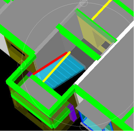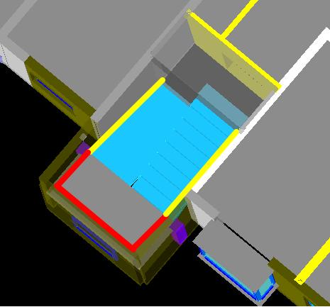 我们再看上图楼梯踢脚线软件是按照水平算的,实际工程楼梯踢脚线休息平台处是水平的(如下图红色线条),只有踏步段是斜长(如下图黄色线条),软件把踏步段按照水平算了,我们可以用手算斜长增加部分就可以了。