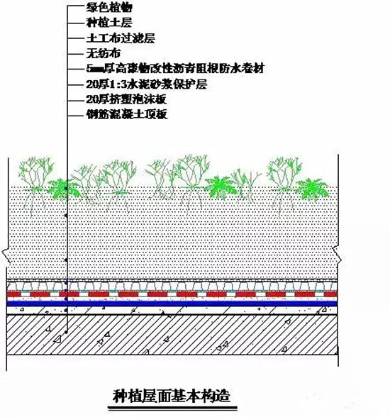 如果是种植屋面,还要做PVC透水隔板、回填腐植土、种植植物、养护等,面层工序变成了绿化专业定额内容。