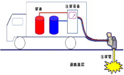 通过填充、渗透和挤密可将地聚合物注浆材料进入微细空隙中,修复道路基层、路面病害和补强路面结构整体强度。