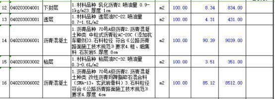 表2:100平米12cm厚沥青道路路面开挖修复分部分项工程清单与计价表
