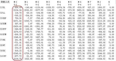 该转换梁i端的弯矩组合,手工校核情况如下: