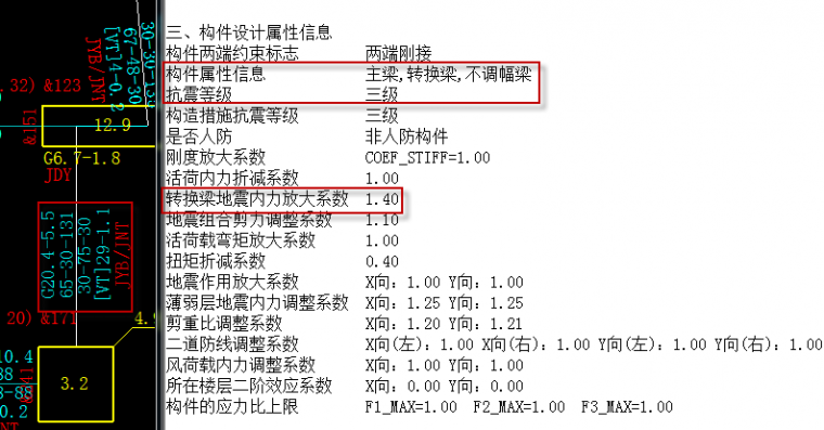 ①在满足抗规、高规的情况下,由于规范中仅仅有特一级、一级及二级三种情况,程序都会按照高规要求,自动对转换梁执行地震作用的调整。