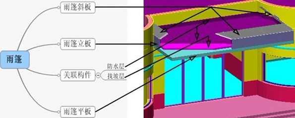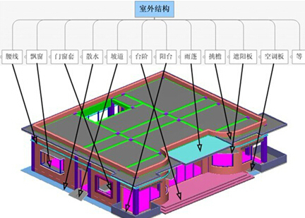 其中飘窗、坡道、台阶、阳台、雨篷、挑檐属于复合构件,需要再进行细分,直分到能算量为止。