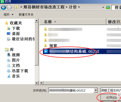 点击后在弹出的打开窗口中找到并选择我们要导入的钢筋工程。