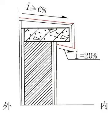 女儿墙压顶、阳台栏板压顶面做向内排水坡,下面做鹰嘴或滴水线