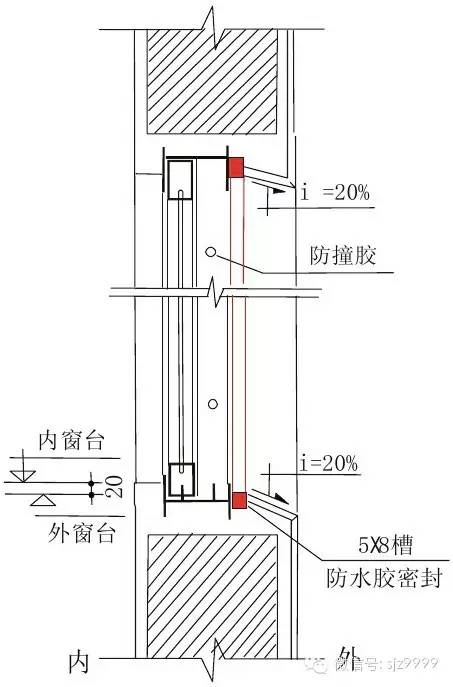 窗楣做鹰咀,外窗台低于内窗台,外窗台做向外排水坡