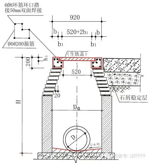 ④ 一定要保证井的收口砖数,用M10水泥砂浆砌双偶砖,内壁1:2水泥砂浆批档15厚,且井环的灰缝要平整饱满。