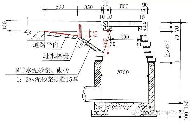 侧入式进水井集水口、进水口标准尺寸控制