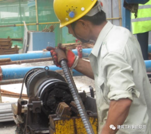 2、丝头加工是钢筋两端应当切平(用砂轮切割机,严禁气割),保证钢筋端头的平整使安装扭矩能有效的相互对顶力,以便消除或减少钢筋受拉时因螺纹间隙造成的变形。