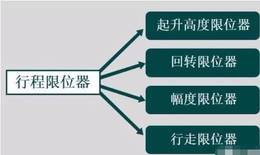 安全防护装置分三类:行程限位器类(起升、回转、幅度、行走限位器)、载荷限制器类(起重力矩限制器、起重量限制器)、其它类。