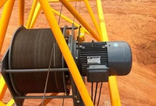 d、钢丝绳虽然没有断丝,但钢丝绳磨损达到其直径的40%,或钢丝绳相对于公称直径减小7%甚至更多时,或钢丝绳明显弯曲等。