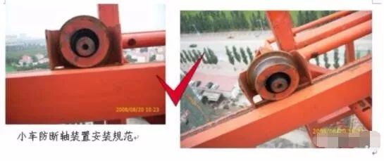 滑轮、卷筒防脱槽装置与轮缘或卷筒侧板最外缘距离应不大于钢丝绳直径的20%,且不影响滑轮的正常运转。