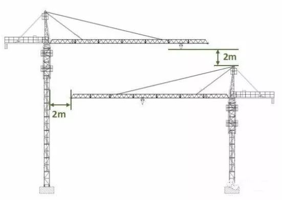 2、相邻塔机的塔身和起重臂不能发生干涉