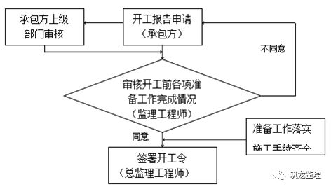 ⑵ 审查开工准备情况要注意以下事项:施工许可已获政府主管部门批准,征地拆迁符合进度需要,施工组织设计已获总监批准,承包单位人员、机具已到位,主要建筑材料已落实,进场道路及水、电、通讯已满足开工要求。
