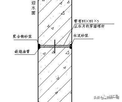 拆模后将预埋的垫块取出,沿混凝土结构边缘将螺栓割断,对割断处进行涂刷防锈漆处理后,嵌入防水油膏(嵌入2/3),最后用聚合物砂浆将螺栓眼抹平。