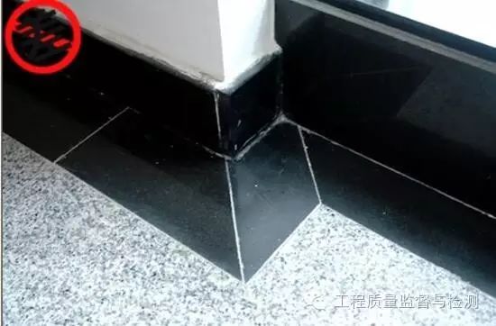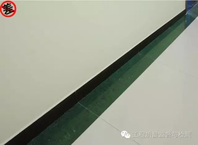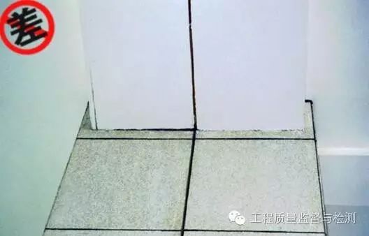 (4)块材拼缝与踢脚线拼缝不对齐。