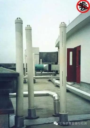 (3)屋面排气孔的布置超过每36m2一只,其高度低于25cm,没有成行排列。