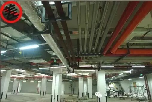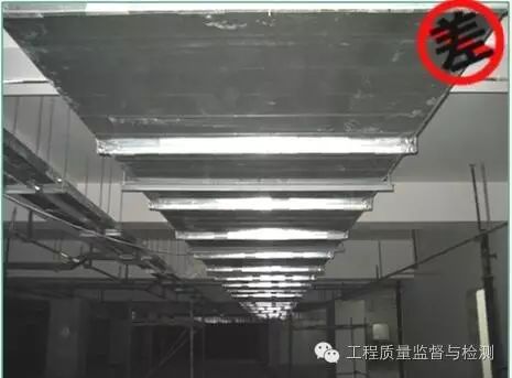 (8)吊顶内的吊杆不规范,吊杆没有涂防锈漆和面漆;吊顶上的喷淋、烟感、灯具、排风口等布置不够合理、美观。