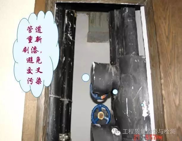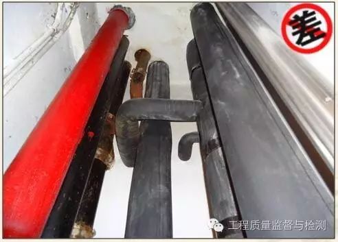 3、空调冷冻水循环水泵机头未进行保温施工,空调管在穿墙、板套管中保温未连续施工产生冷桥;采暖管道在管道井内支管未作保温,不节能。