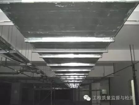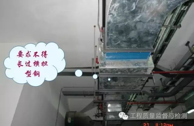 1、风管安装横平竖直、连接严密,螺栓方向、露出长度一致;吊支架(防晃支架)结构正确,安装牢固,布置合理,吊杆需双螺母锁固。