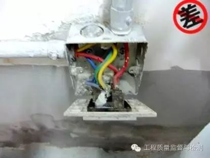 2、开关、插座面板应清洁、平整无污染,盒口应于墙面一平,埋深大于2cm须加套,小于2cm应修边。盒内应清洁无垃圾,合锈蚀须防腐。