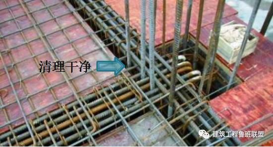 1)墙、柱根部钢筋上水泥浆清理干净。