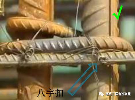 箍筋的接头应沿柱子立筋交错布置绑扎,箍筋与立筋要垂直,绑扣丝头应向里。绑扣相互间应成八字形。