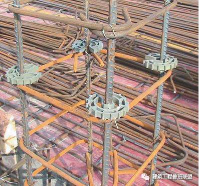 柱筋垫块设置在主筋上,墙筋垫块设置在墙水平筋上。
