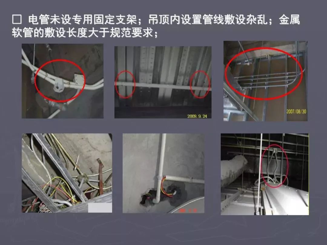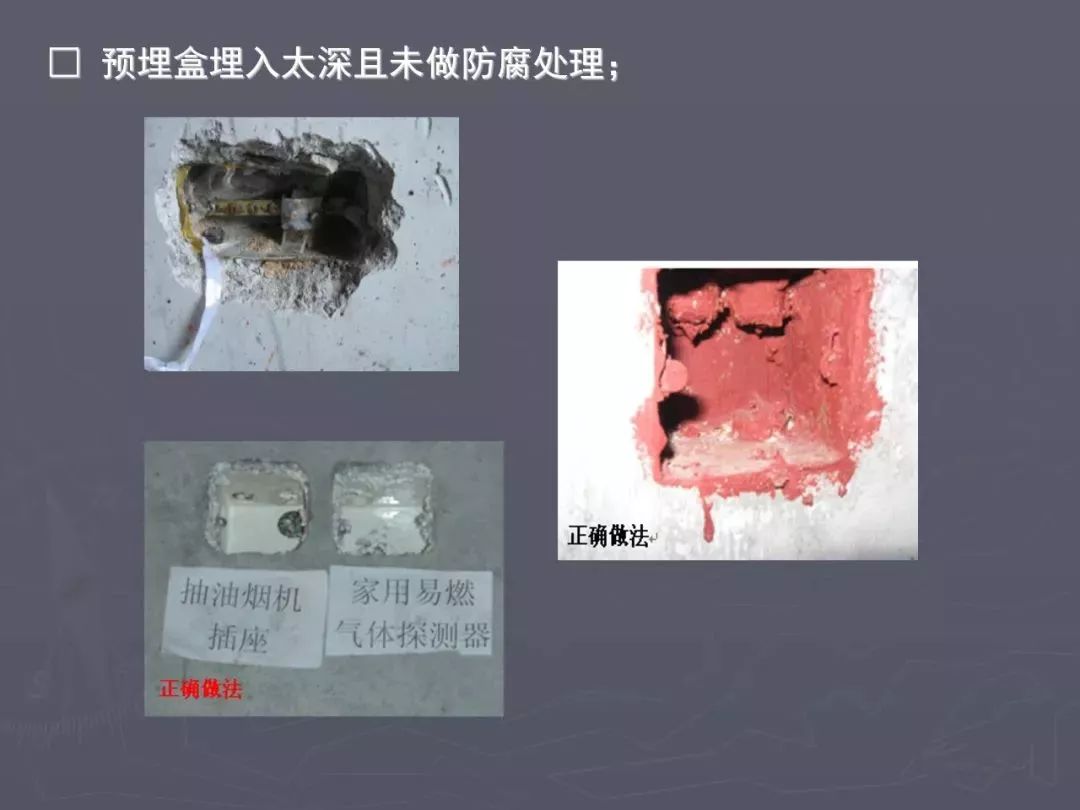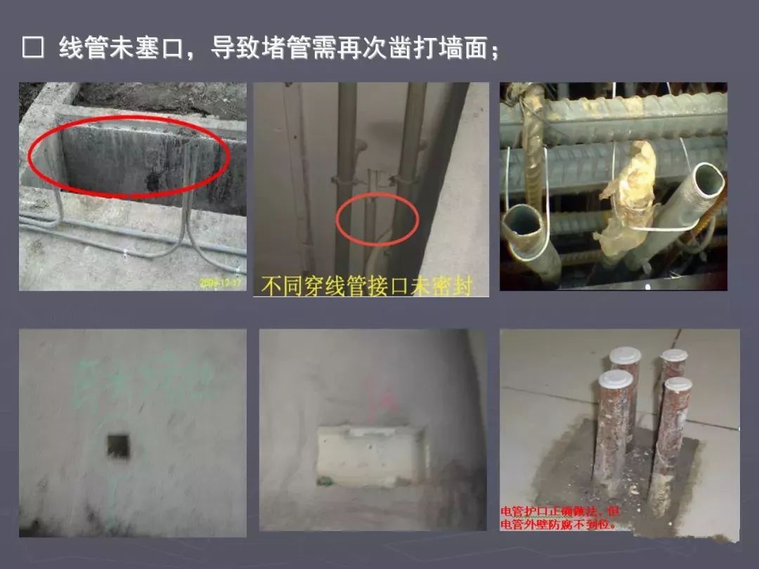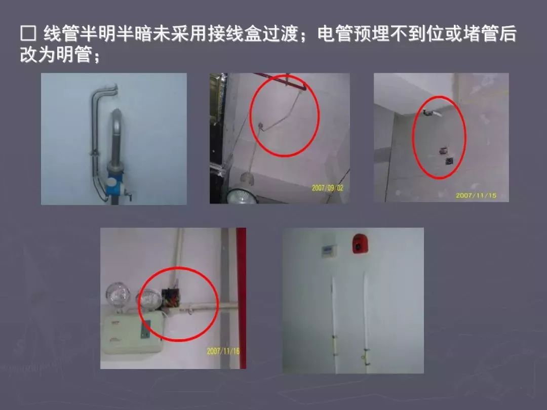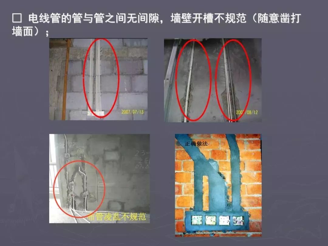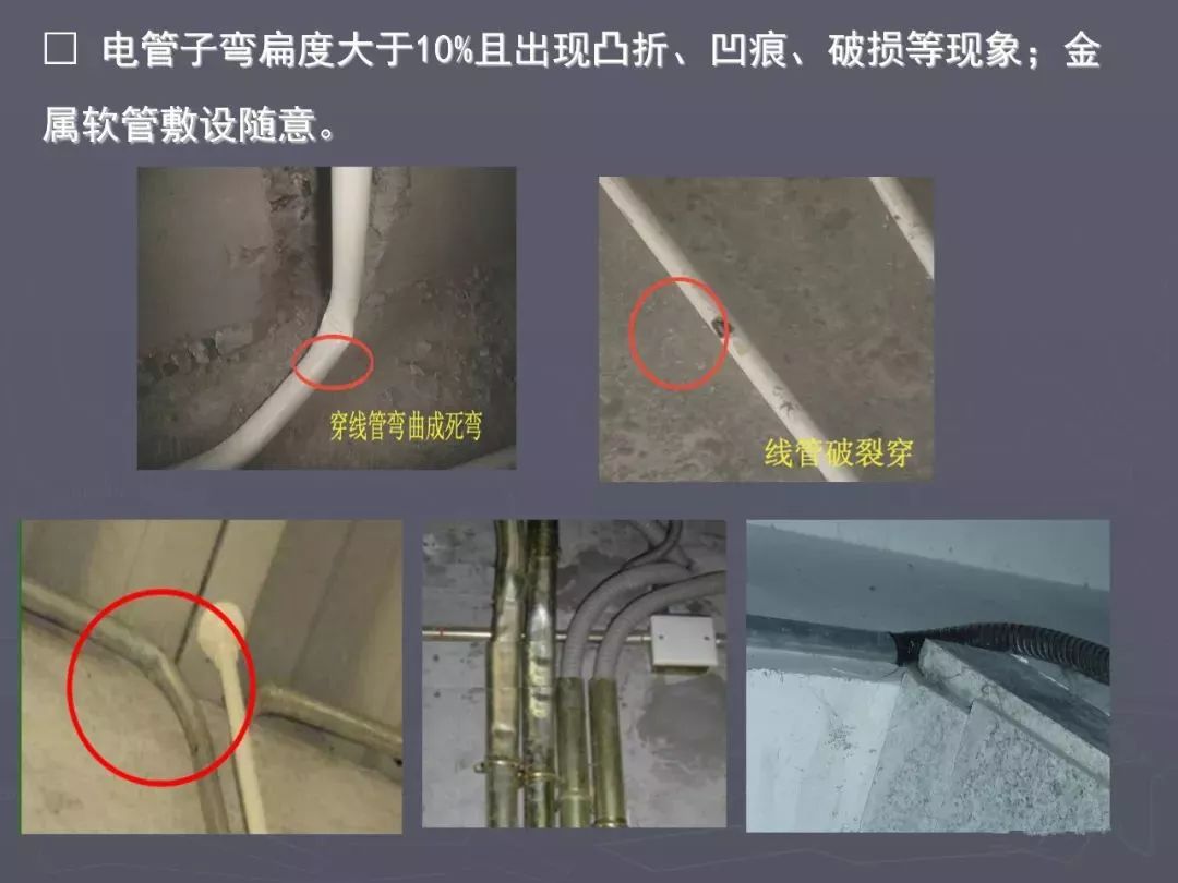 (3)电线管埋墙深度太浅,甚至埋在墙体外的粉层中。管子出现死弯、痛折、凹痕现象。