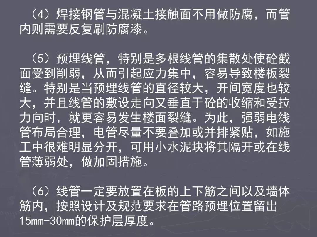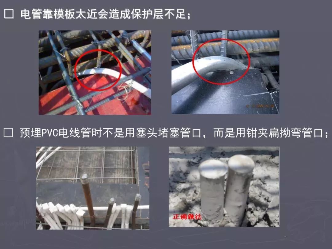 (5)预埋PVC电线管时不是用塞头堵塞管日,而是用钳夹扁拗弯管口。