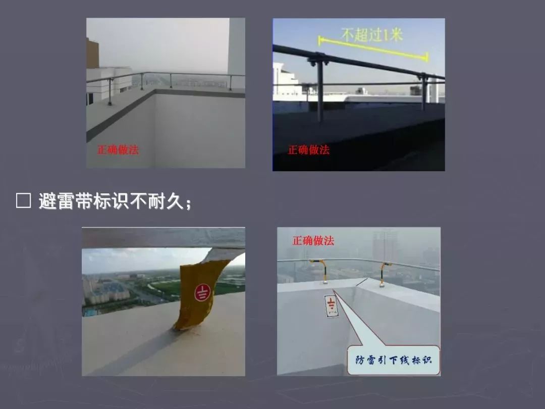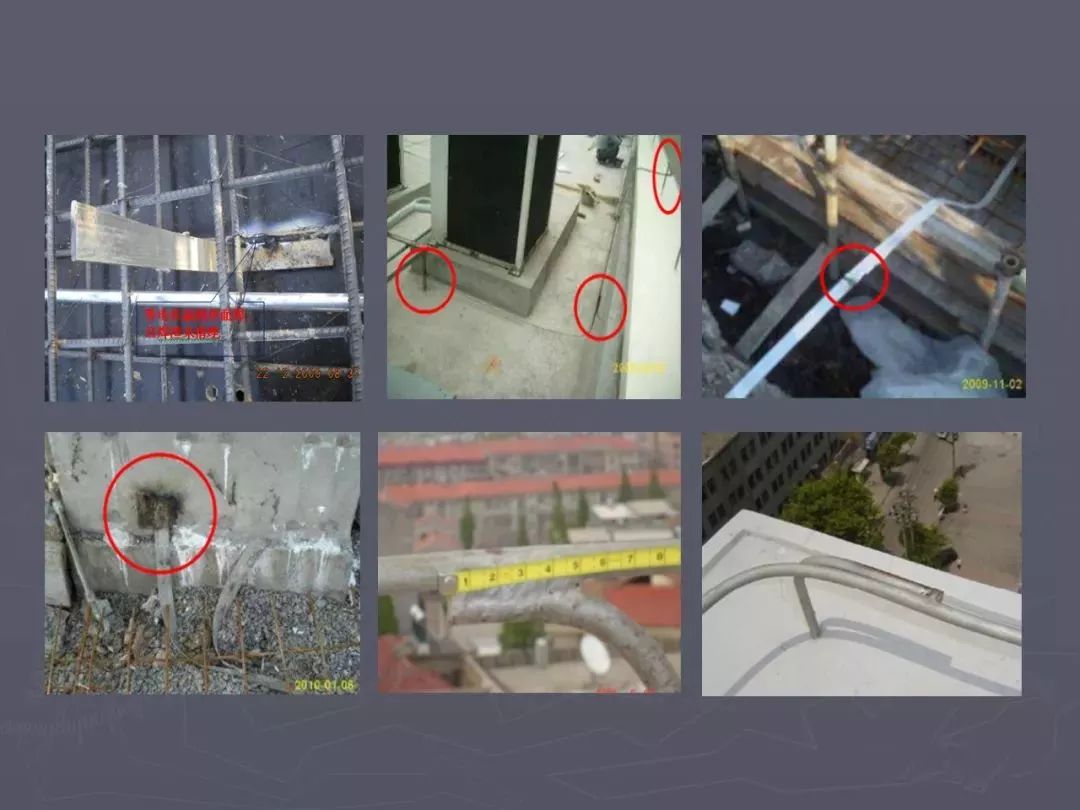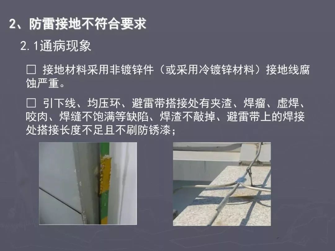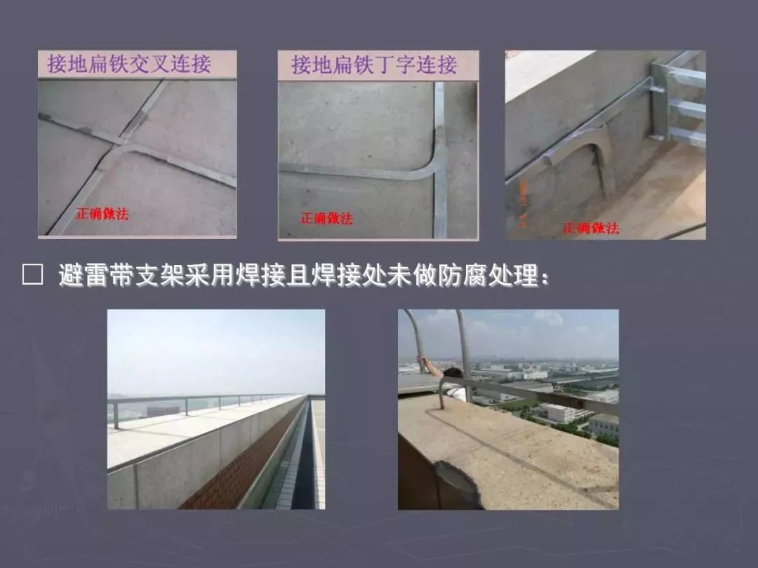 (2)焊渣不敲掉、避雷带上的焊接处不刷防锈漆。