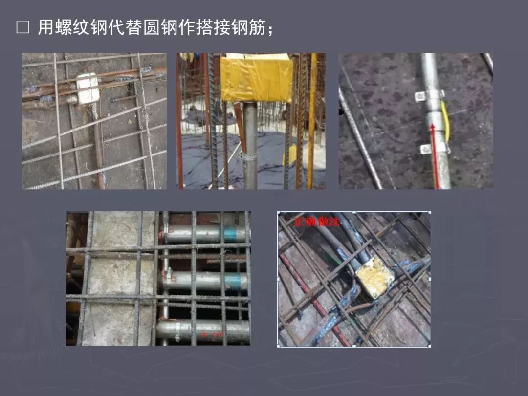 (3)用螺纹钢代替圆钢作搭接钢筋。
