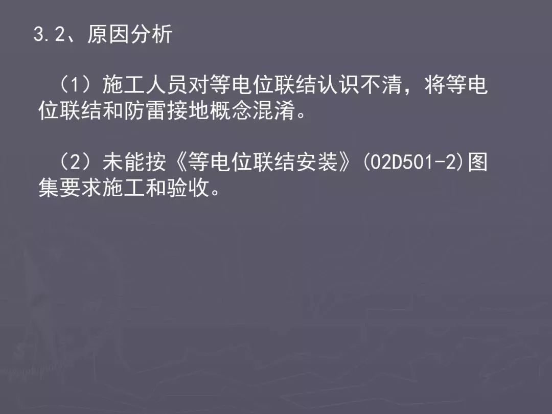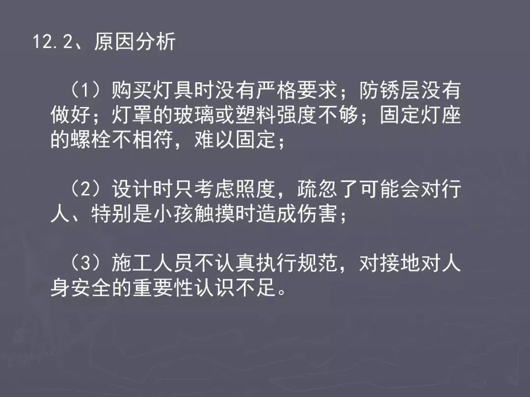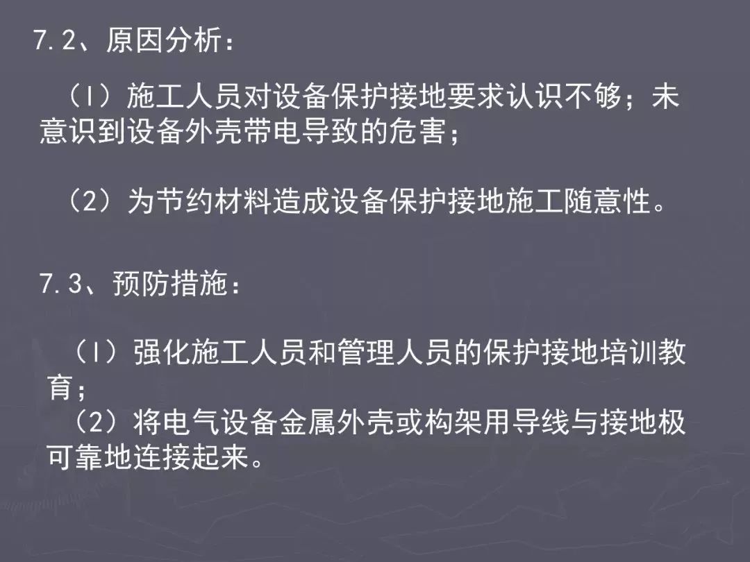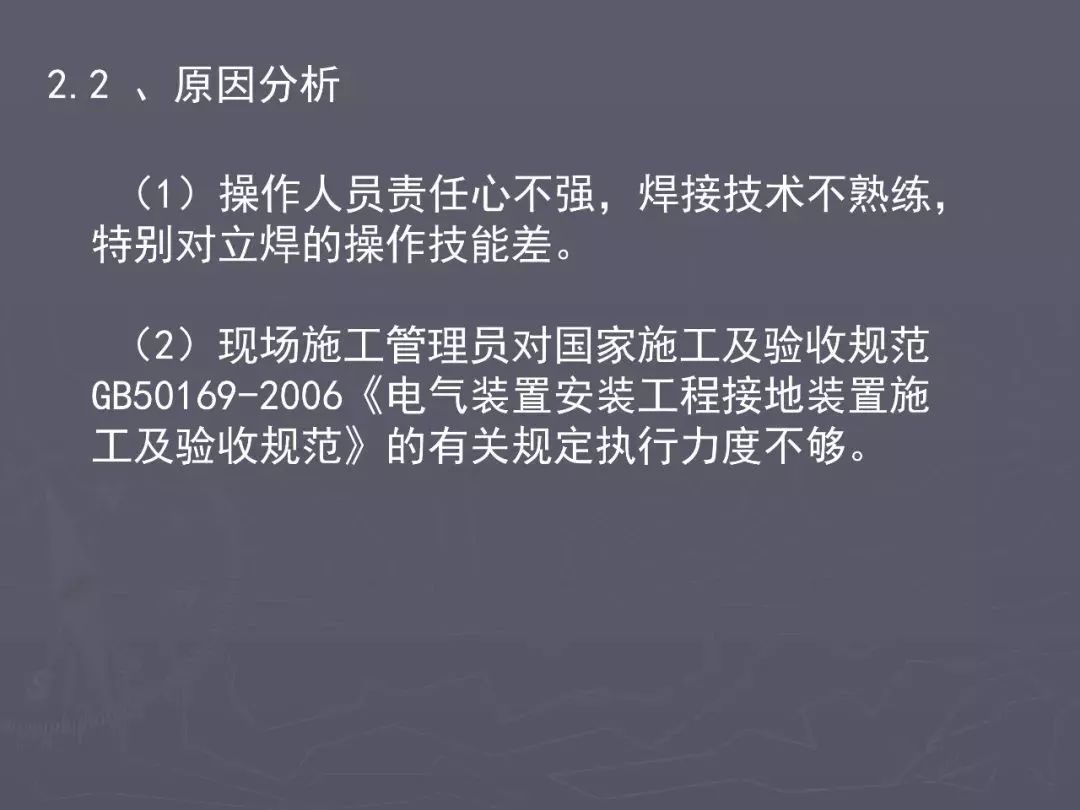 (3)施工人员不认真执行规范,对接地对人身安全的重要性认识不足。