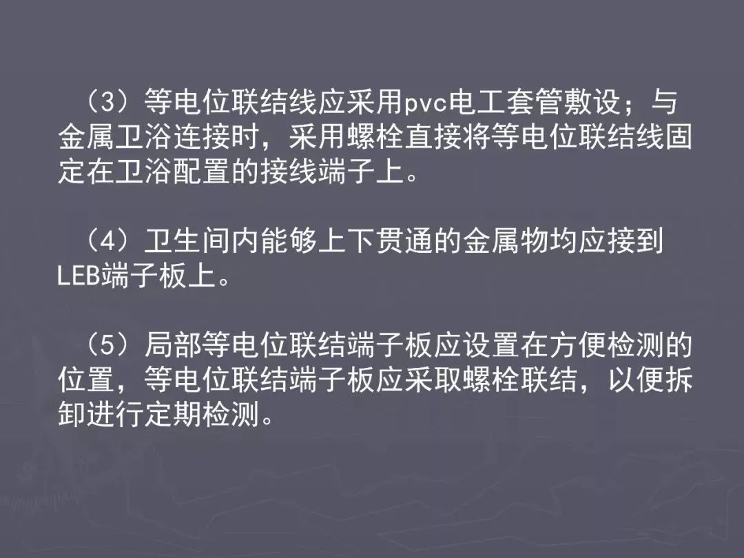 (5)透切理解验收部门关于接地的有关规定。根据供电部门和市质检总站的要求,动力箱的箱体接地占和导线必须明确显露出来,不能在箱底下焊接或接线。接地的导线按规范当装置的相线截面S16mm2时,接地线最小截面为S;当16〈S35mm2时,接地线的最小截面为16mm2;当S〉35mm2时,接地线的最小截面为S/2。