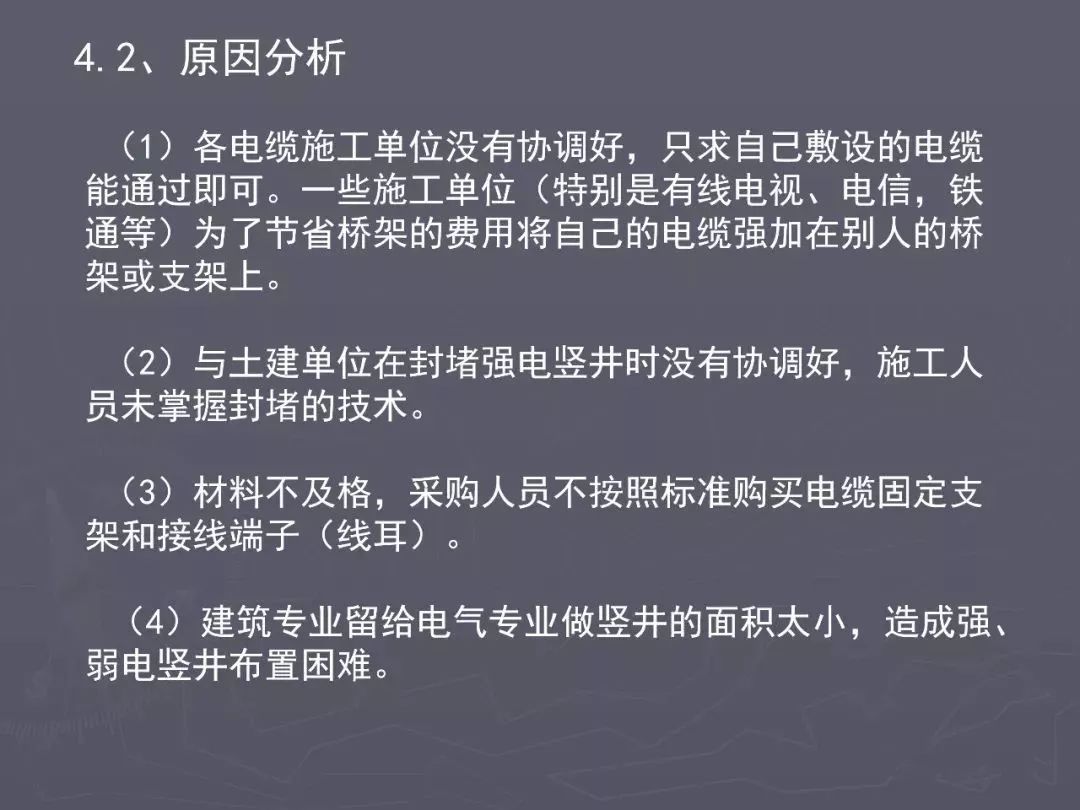 (1)各电缆施工单位没有协调好,只求自己敷设的电缆能通过即可。
