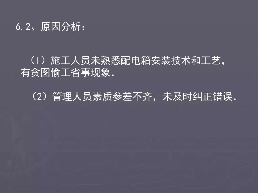 (2)施工人员责任心不强,对电器的使用安全重要性认识不足,贪图方便。