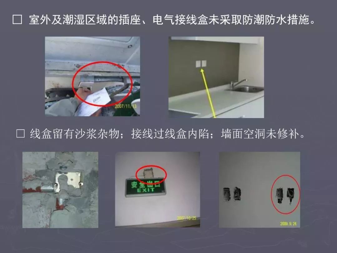 (1)线盒预埋太深,标高不一;面板与墙体间有缝隙,面板有胶漆污染,不平直。