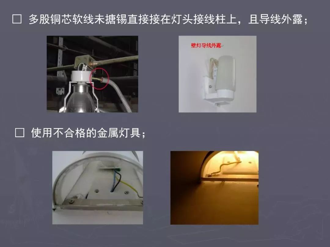 (1)购买灯具时没有严格要求;防锈层没有做好;灯罩的玻璃或塑料强度不够;固定灯座的螺栓不相符,难以固定。