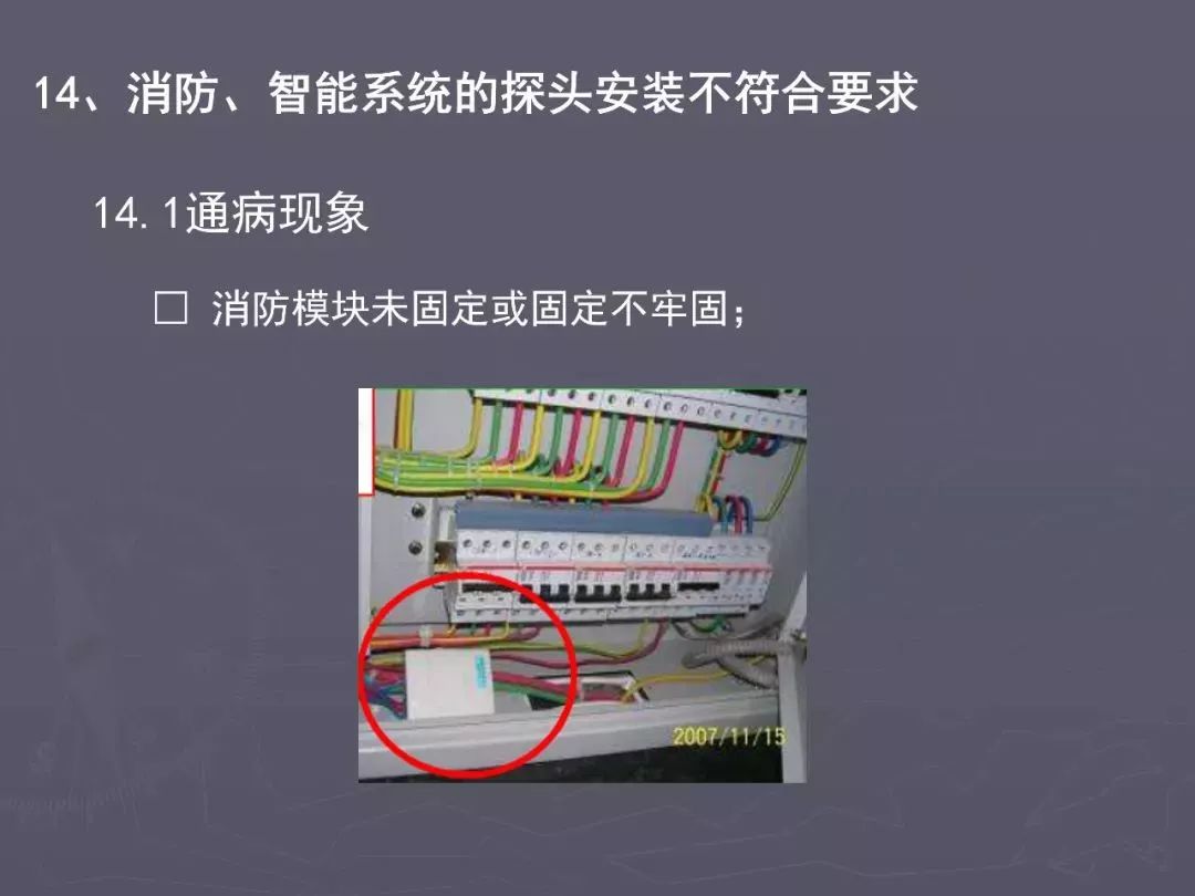 (1)探头安装松动、与墙、板、吊顶间有缝隙。
