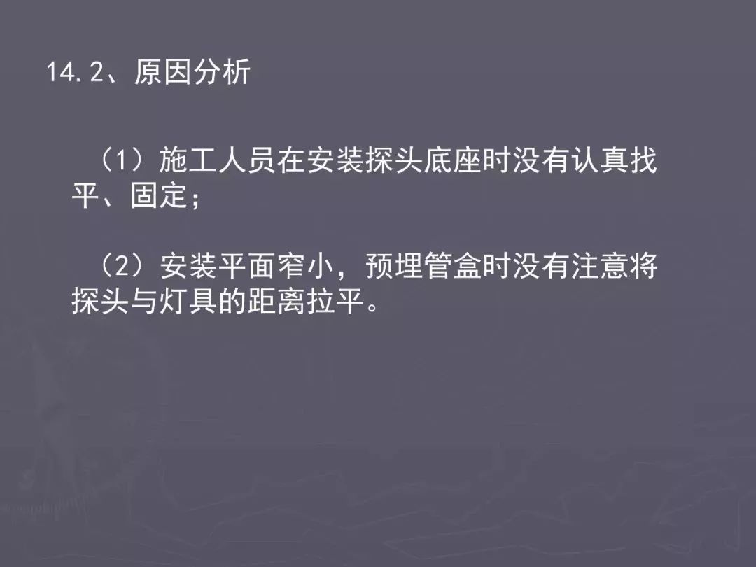 (2)安装平面窄小,预埋管盒时没有注意将探头与灯具的距离拉平。