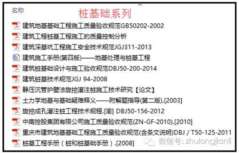 比如我去检查桩基础、地下防水、砌体工程,我一定会在我的电脑上准备这些资料: