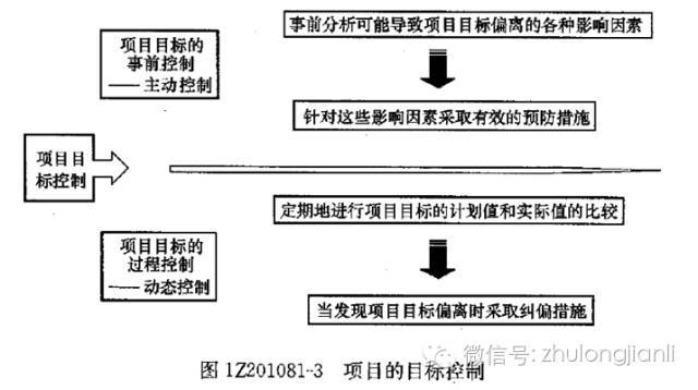 此处,又不得不谈动态控制原理,项目目标动态控制的核心是,在项目实施的过程中定期地进行项目目标的计划值和实际值的比较,当发现项目目标偏离时采取纠偏措施。为避免项目目标偏离的发生,还应重视事前的主动控制,即事前分析可能导致项目目标偏离的各种影响因素,并针对这些影响因素采取有效的预防措施(如图12201081-3所示)。