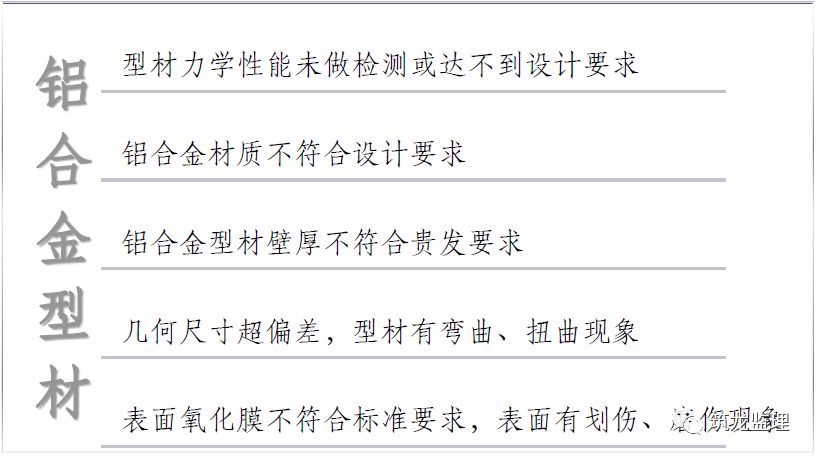 1)、使用的铝合金氧化膜、漆膜厚度不符合设计要求,附着力差。(监理无测厚仪器、无检查记录)