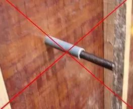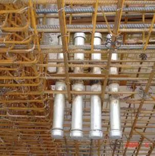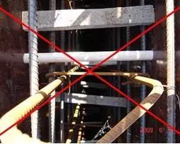 3、临空墙、门框墙的模板安装,其固定模板的对拉螺栓上严禁采用套管、混凝土预制件等,应使用止水螺杆。