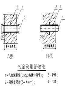 1、各人员出入口和连通口的防护密闭门门框墙、密闭门门框墙上均应预埋4-6根备用管,管径为50-80mm,管壁厚度2.5mm的热镀锌钢管,并应符合防护密闭要求。